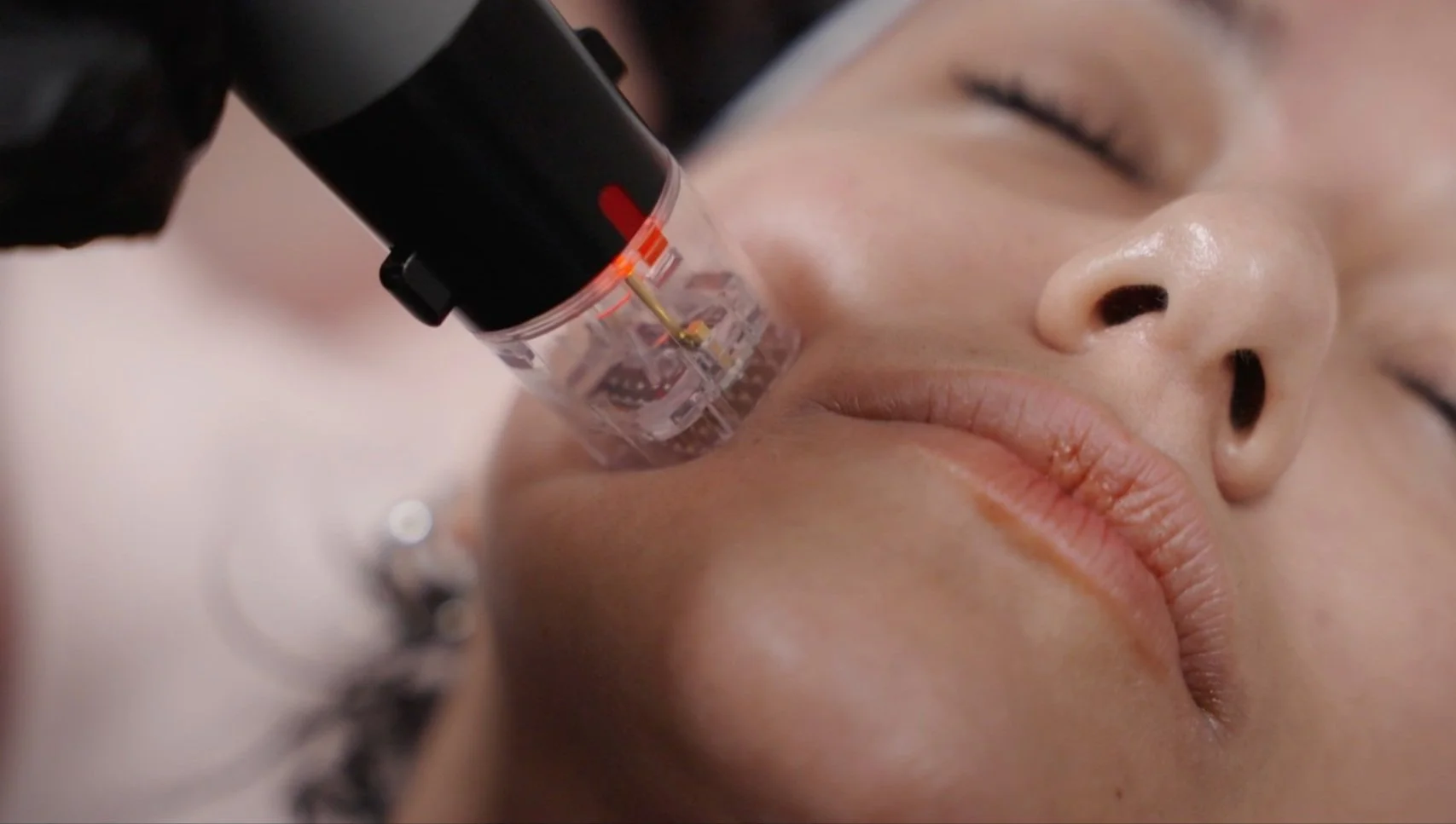 Previous microneedling devices have just 1 needle moving in and out of the skin over and over again. Our Lutronic Genius device has a stamp of 49 tiny gold plated needles. The needles deliver radiofrequency waves to stimulate the fibroblasts to produce more collage and elastin. The device can sense the amount of energy delivered allowing for less risk of under or over treated areas. Not only are you altering the architecture of the top layer of skin like traditionally microneedling, you are also stimulating skin tightening with collagen production in the deeper layers of the skin.